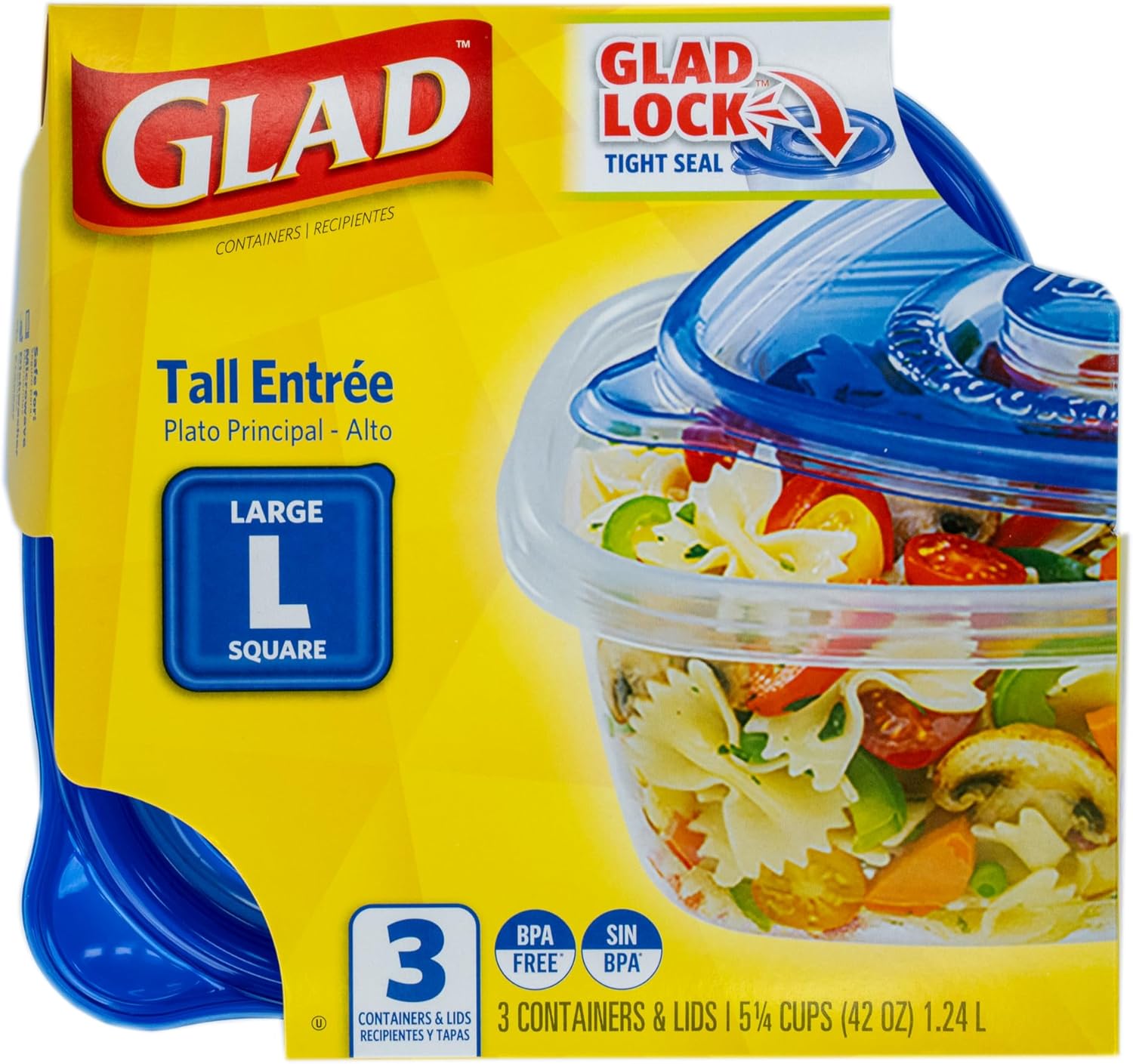 Glad GladWare Tall Entree Food Storage Containers - Large Square - Meal Container Holds up to 42 Ounces of Food - Lock Tight Seal, 3 Count