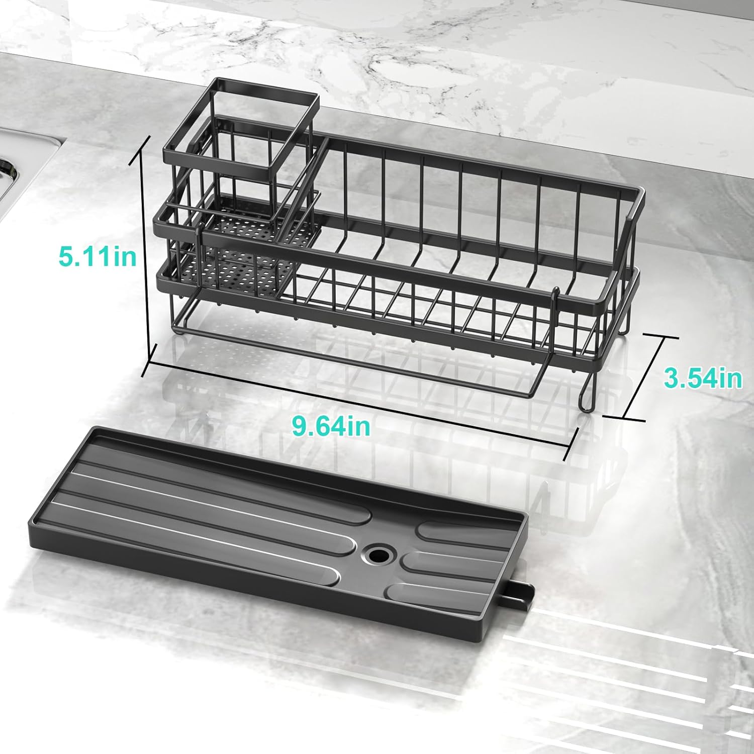 - Support: The size of our sink organizer is 9.06*3.54*4.13 inches. Our sponge caddy for kitchen sink can meet your daily needs well. If you are not satisfied with this, please reach out to us.