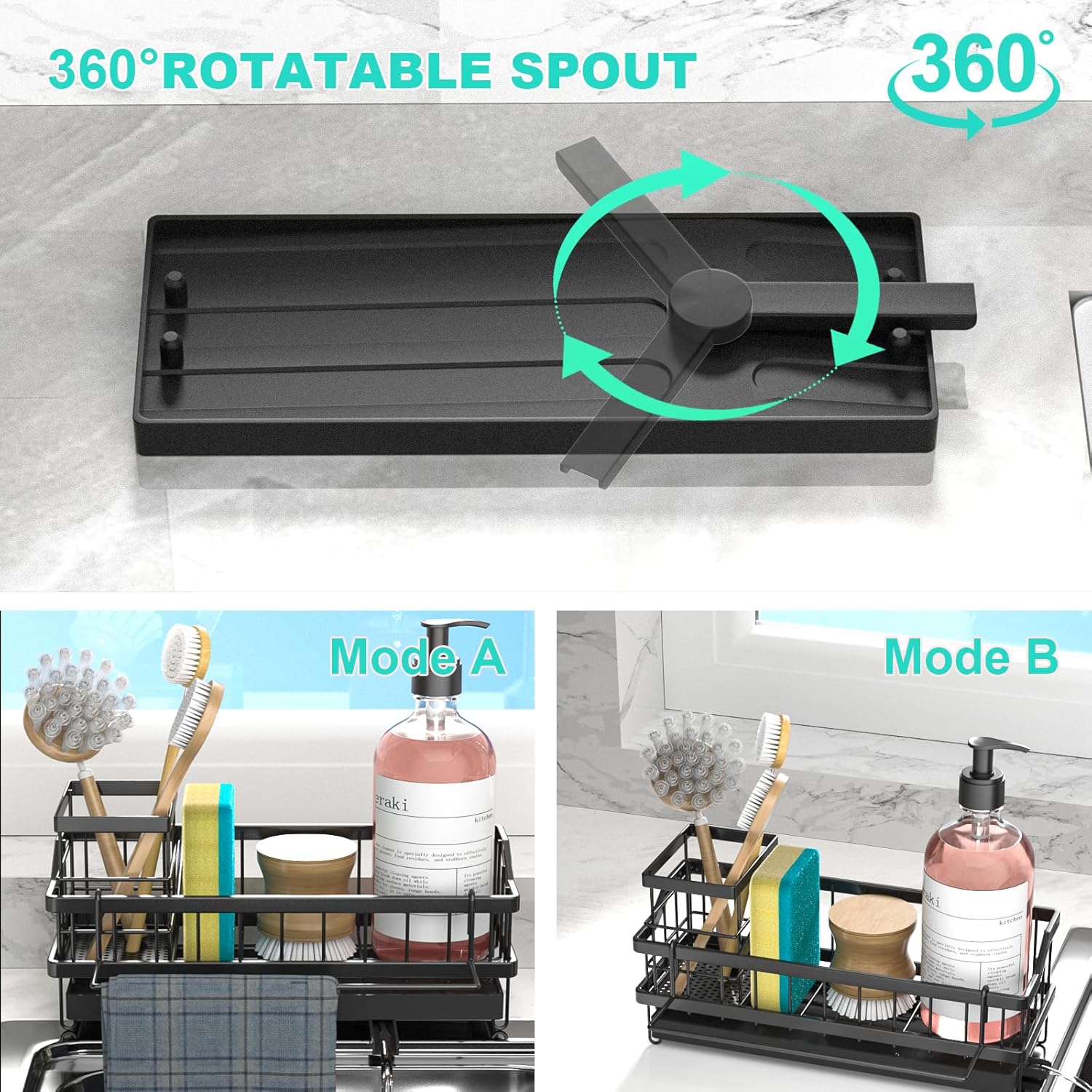 - Automatic Drainage: Ahonnpely kitchen sink box has a rotatable drainage pipe that can rotate freely to discharge excess water droplets into the sink, keeping the countertop clean without the need to remove cleaning water, saving cleaning time.