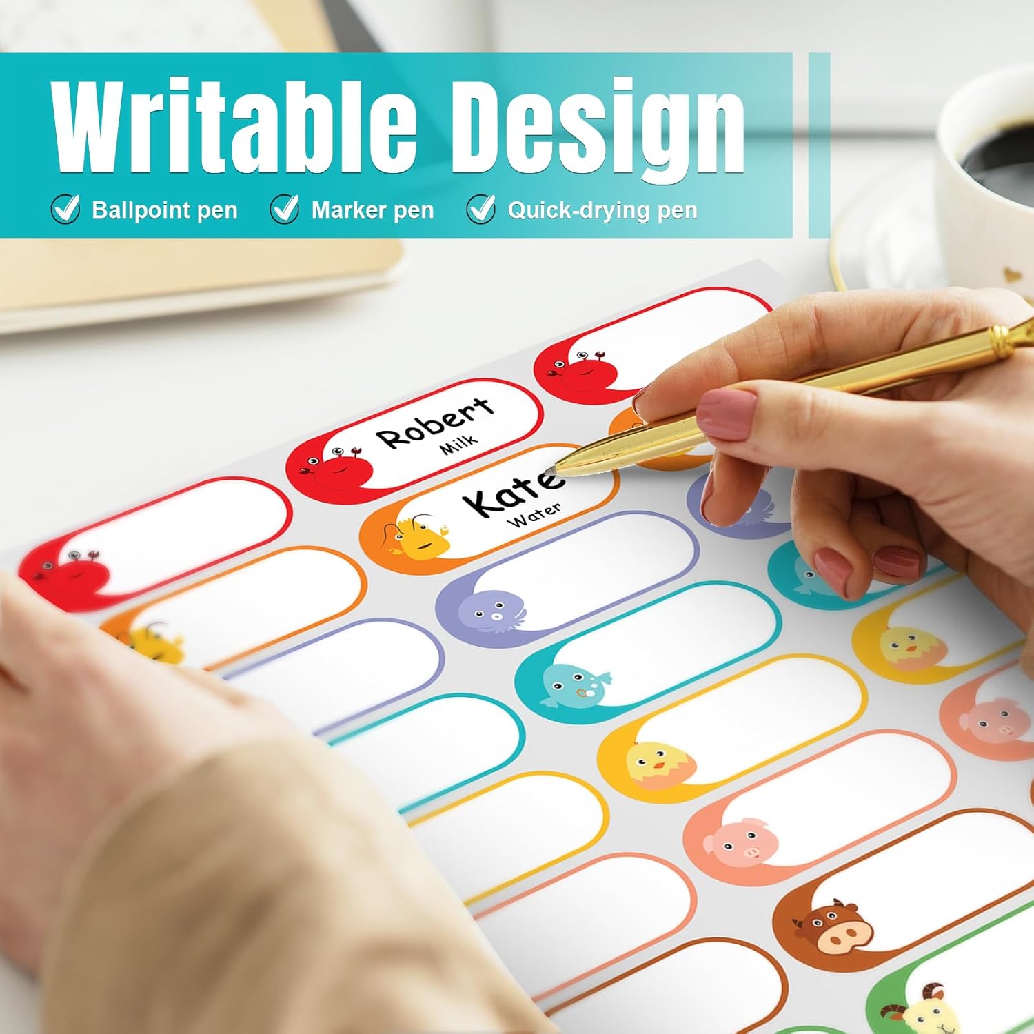 - Triple-proof paper: Food Grade Safety Stickers,Waterproof, Stain-proof and Scratch-resistant.No paper or glue residue left on the food container or milk bottle.Our kitchen labels are easy to stick and peel off.We use safe glue,which meets food packaging standards.