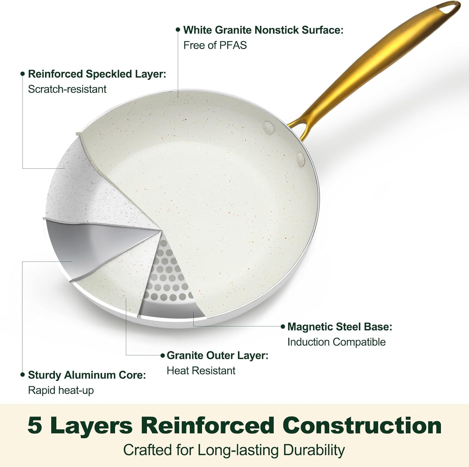 - 【Reinforced Granite Cookware】M MELENTA pots and pans feature top-level, harder white granite nonstick coating, ensure your daily cooking always safer. Food slides out easily. Clean up is quick & easy, simply rinse or wipe with a damp paper towel. Enjoy healthier and easier cooking with our granite pans set nonstick