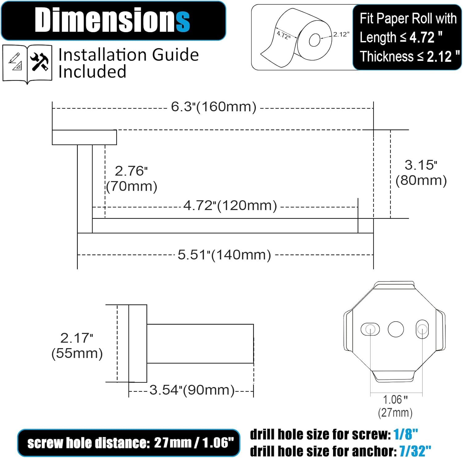 - ◄ Package Content ► Includes 1 piece of toilet paper holder, mounting hardware and installation instructions in the box