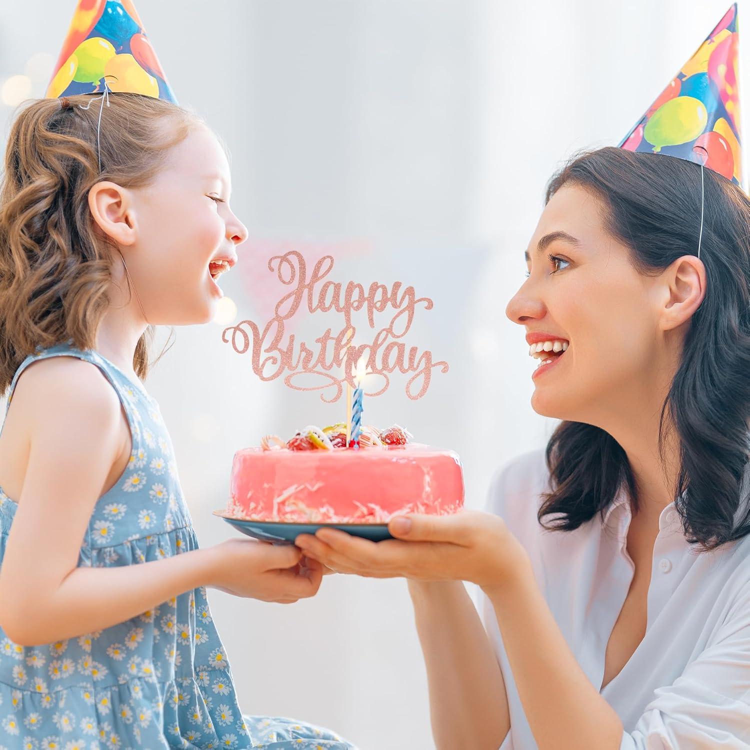 Happy Birthday Cake Toppers 9 Inch Glitter Happy Birthday Cake Pick for Birthday Anniversary Theme Party Cake Decorations Supplies - Rose Gold