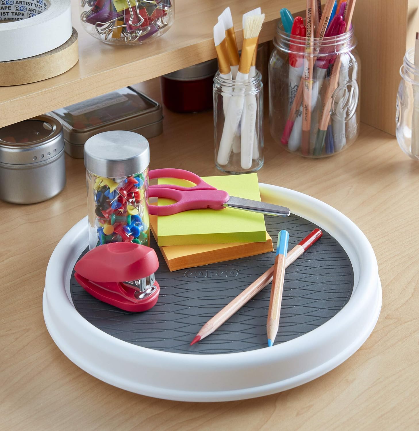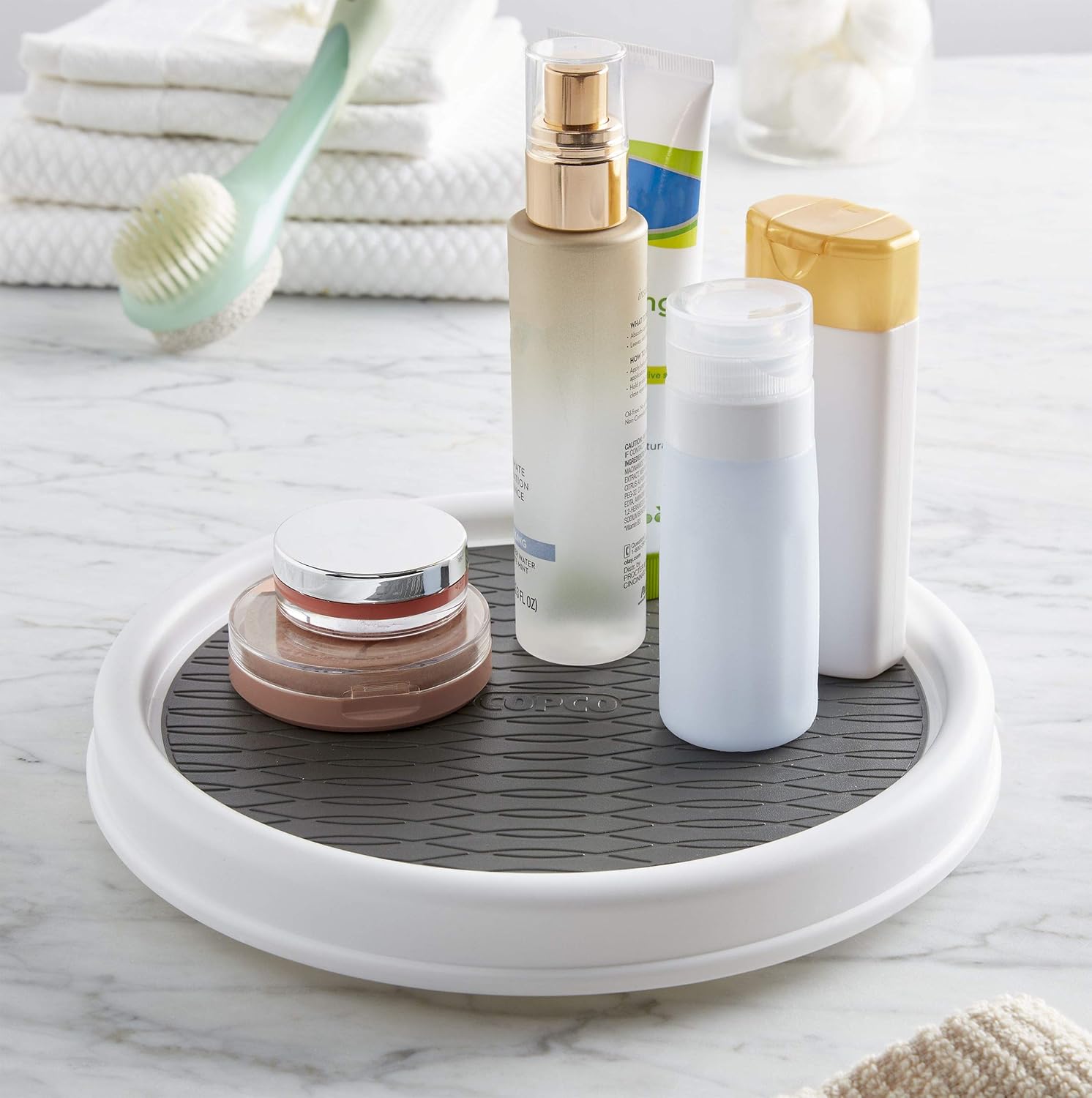 - STABLE & SECURE: Nonskid liner keeps items in place while rotating, and raised rim prevents items from falling off