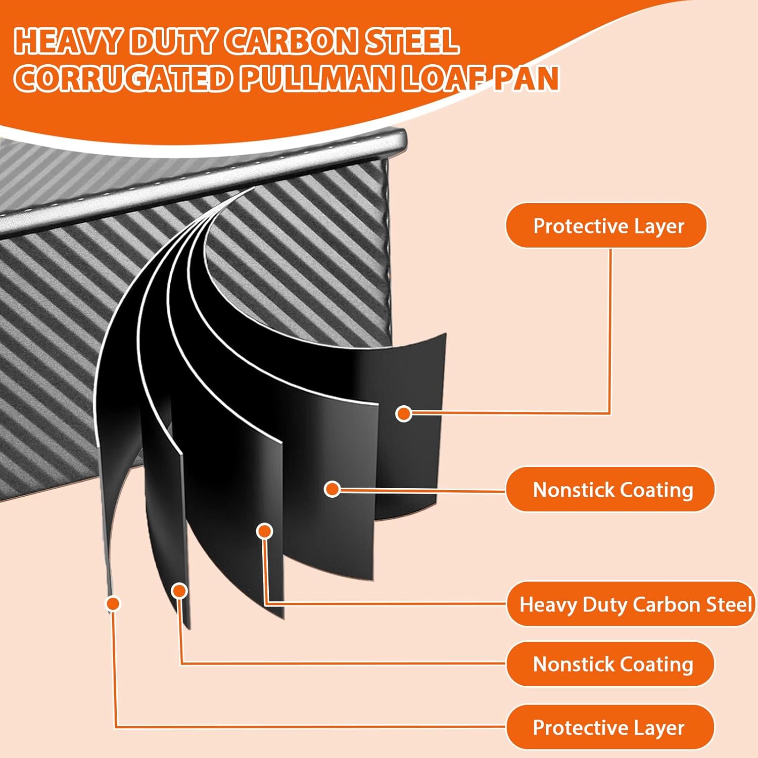 - Non-Stick Pullman Loaf Pan with Lid 13x4 Inch - 2.2lb Carbon Steel Bread Baking Pan with 4 Vent Holes, Heavy Duty Sourdough Loaf Pan with Cover for Homemade Sandwich Bread