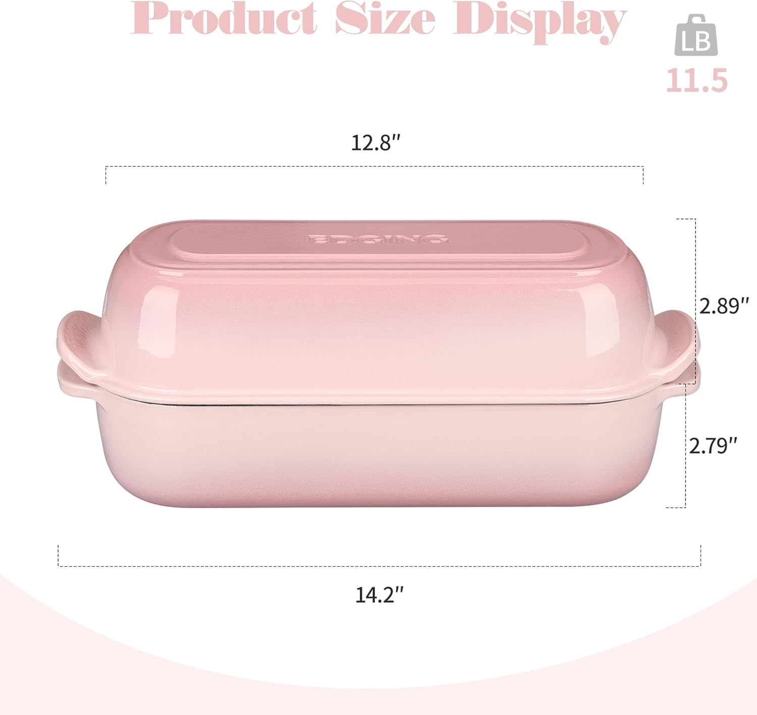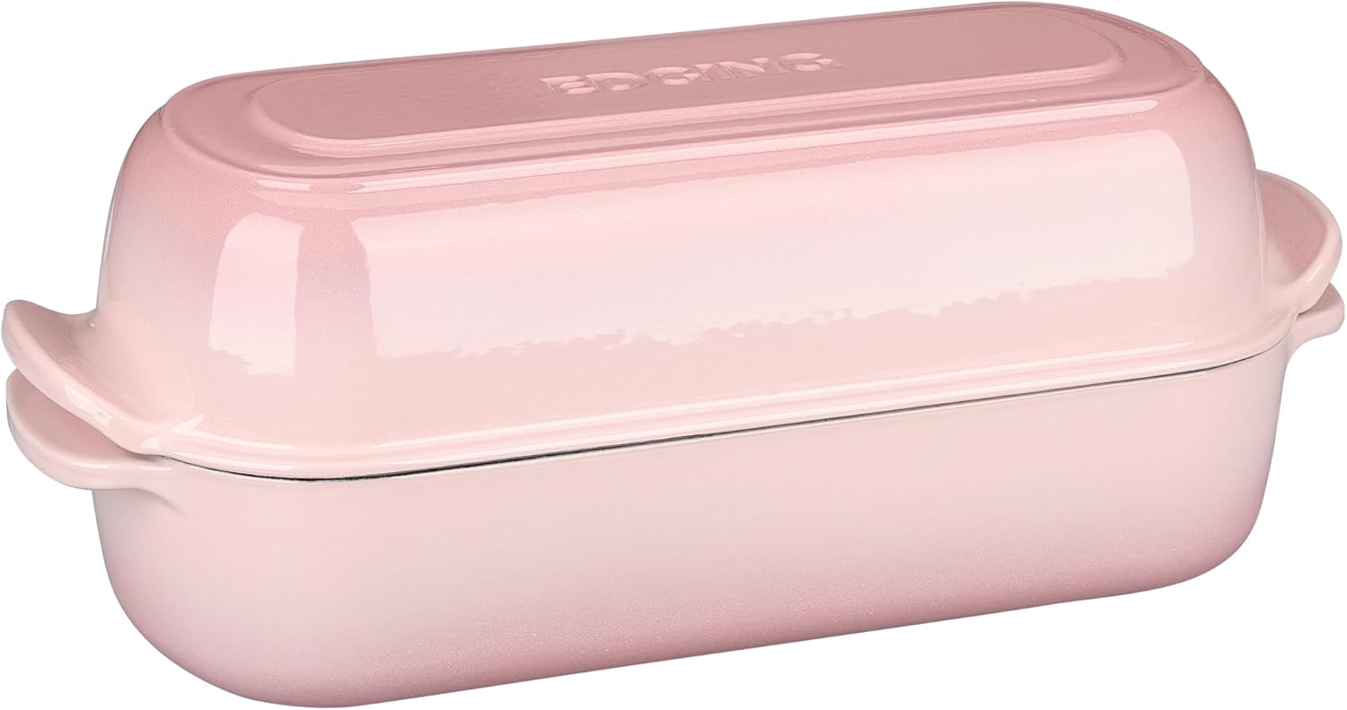 Enameled Cast Iron Loaf Pan with Lid, Dutch Oven for Homemade Bread Baking, 12.5x5.5 inch, 5Qt, Pink