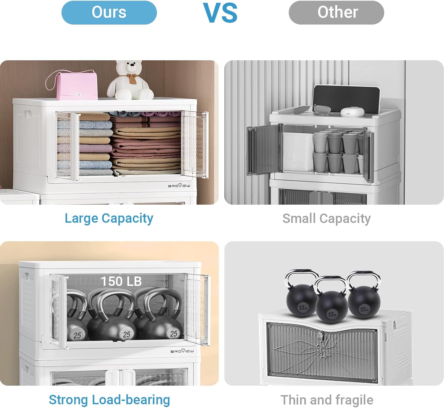 - γSpace-Saving Stackable & CollapsibleγMaximize your storage footprint. Stack bins vertically as modular cabinets (bedside, clothing, books, kitchen) and collapse them nearly flat when not in use. Perfect for closets, laundry rooms, garages, playrooms, classrooms, dorms, and car trunks β featuring a roomy, odorless design.