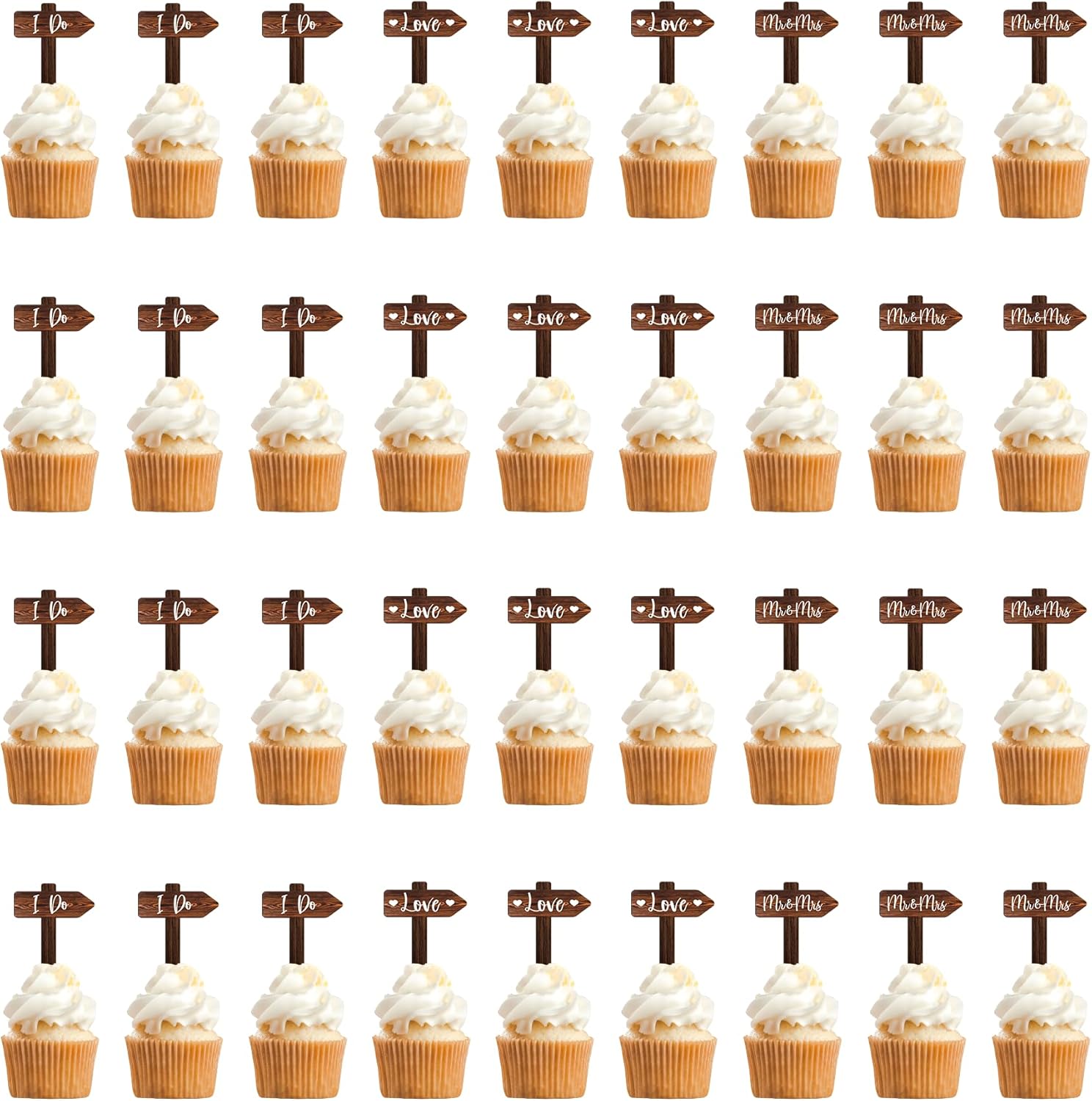 36 PCS Wedding Cupcake Toppers in Wood Rustic Wedding Cake Decoration