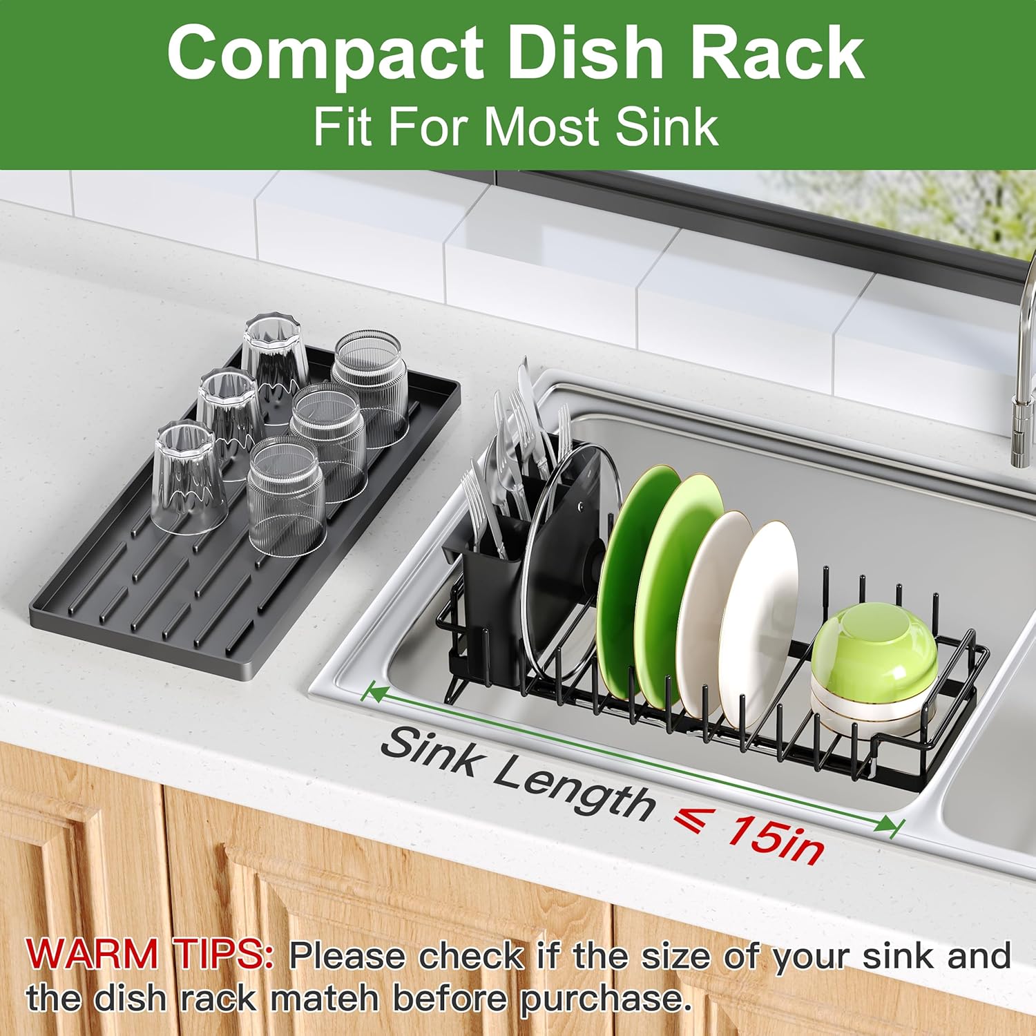 - πSmall Space Kitchen Solution: This compact dish drying rack works over sinks, inside sink basins, or with tray on counter. Perfect small in sink dish drying rack that maximizes vertical space for precious kitchen areas.